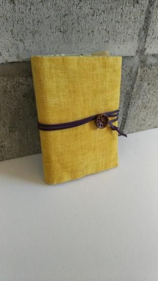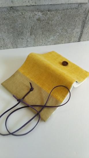 リネンの生地と革紐、草木染めの優しい風合いは使うほど味が出てきます。